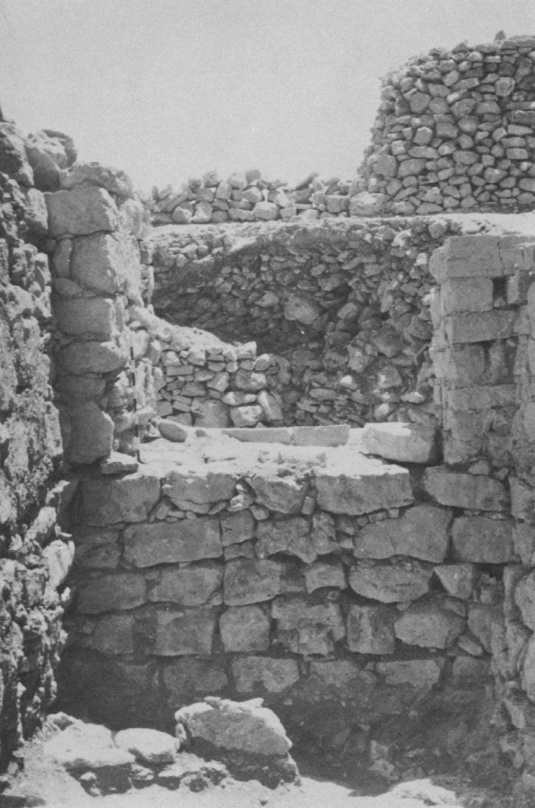 Plate 106aNorthwest city gate above; temple walls immediately below. Huwar floor of gateway in foreground. Kelso et al. (1968) Pl. 108b