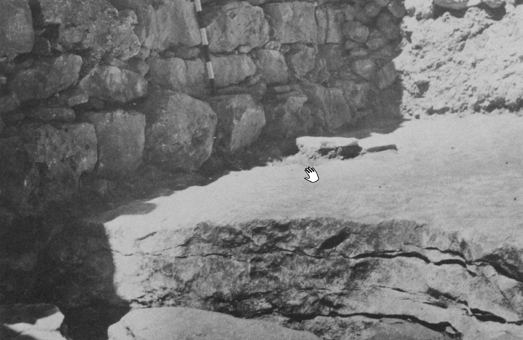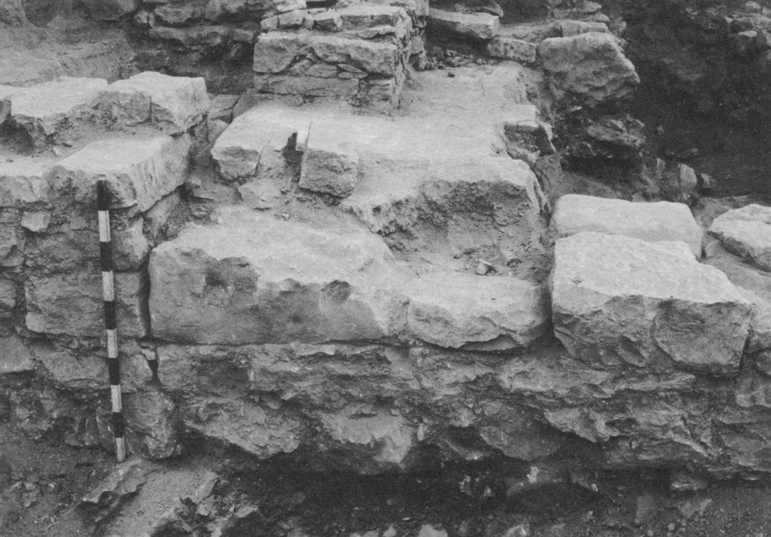 Plate 106bSection of high place rock ledge with south wall of temple and some paving stones of temple floor above the ledge Kelso et al. (1968) Pl. 108a