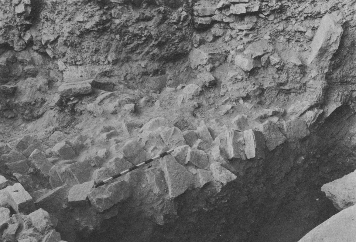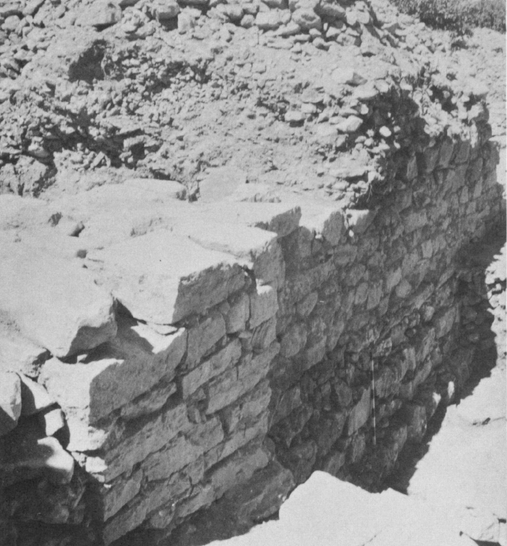 Plate 108bHigh place ledge and north walls of temple and city gate. West end of the floor of the gates's north corridor is beyond the ledge. Kelso et al. (1968) Pl. 109b
