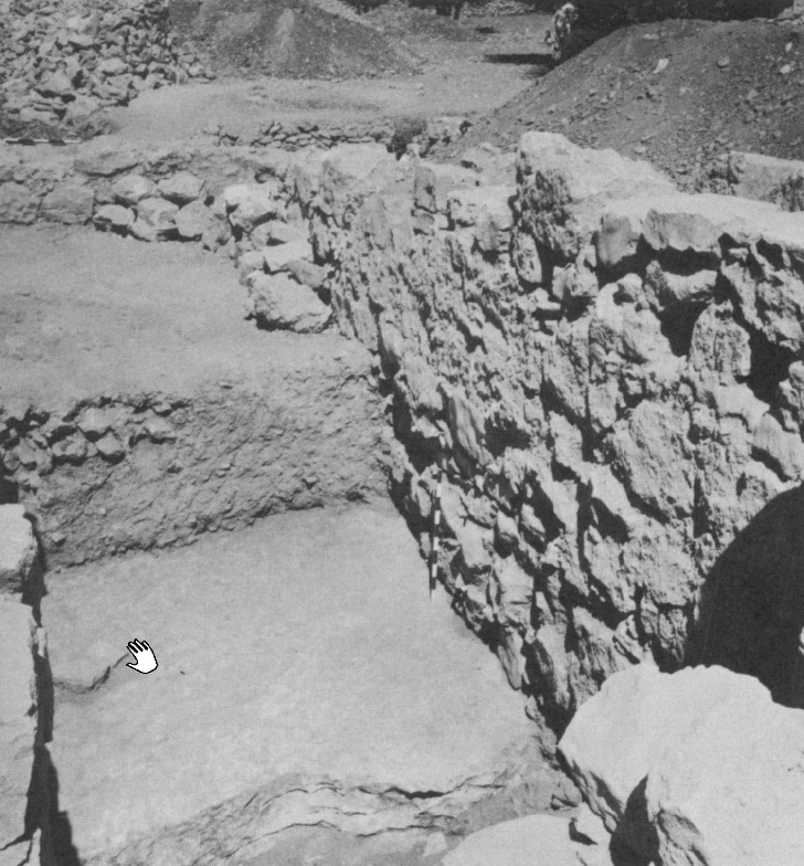 Plate 106aNorthwest city gate above; temple walls immediately below. Huwar floor of gateway in foreground. Kelso et al. (1968) Pl. 106b
