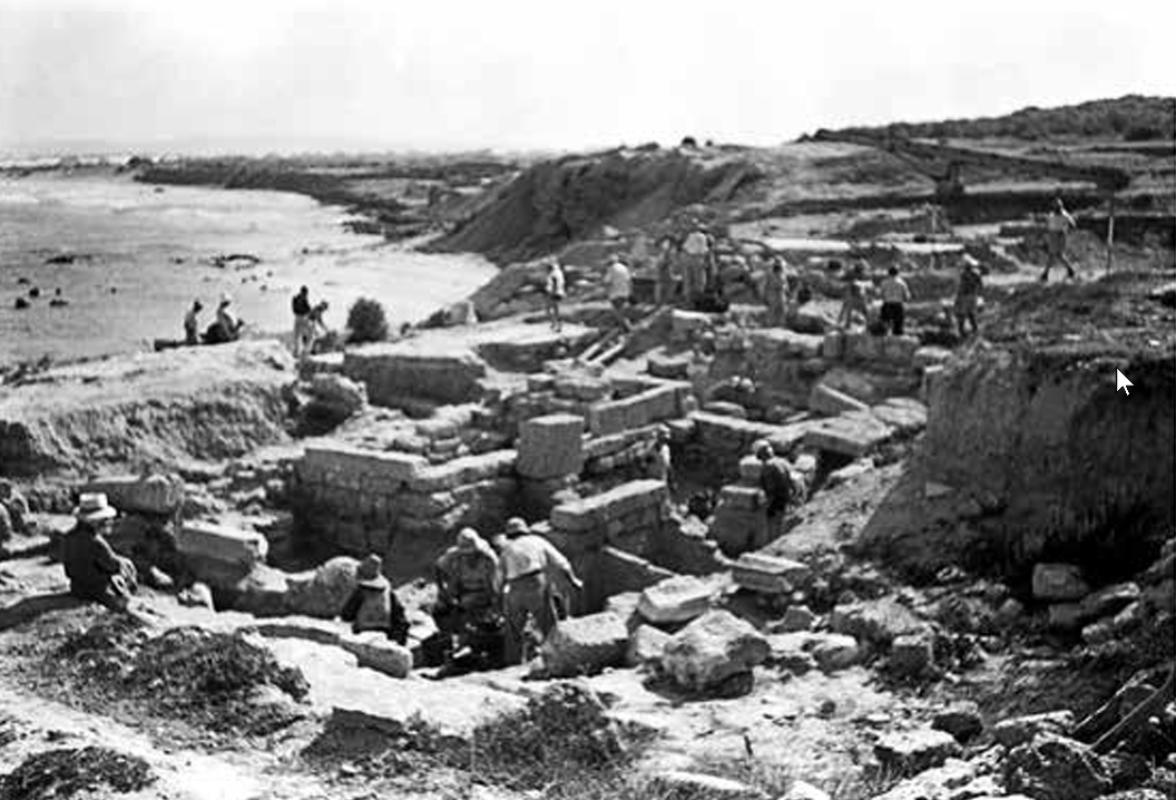 Caesarea is a large site, comprising about 235 a. within its semicircular perimeter wall. In the eighteenth and nineteenth centuries European travelers, such as R. Pococke and V. Guerin, published more-or-less accurate descriptions of the site. In 1873, C. R. Conder and H. H. Kitchener mapped and described it as part of the Survey of Western Palestine, noting, for example, the aqueducts, the semicircular (outer) perimeter wall, the medieval fortifications, and the theater. Over the next ninety years there were only chance finds. In 1945, J. Ory,forthe Mandatory Department of Antiquities, and M. Avi-Yonah, in 1956 and 1962, for the Israel Department of Antiquities and Museums, explored the meager remains of a synagogue revealed during winter storms along the northern seashore. In 1951, S. Yeivin excavated a marble-paved esplanade east of the Crusader city for the department, where a tractor from Kibbutz Sedot Yam had struck a colossal porphyry statue. In 1955, a large mosaic pavement on a ridge to the northeast of ancient Caesarea was also exposed accidentally.