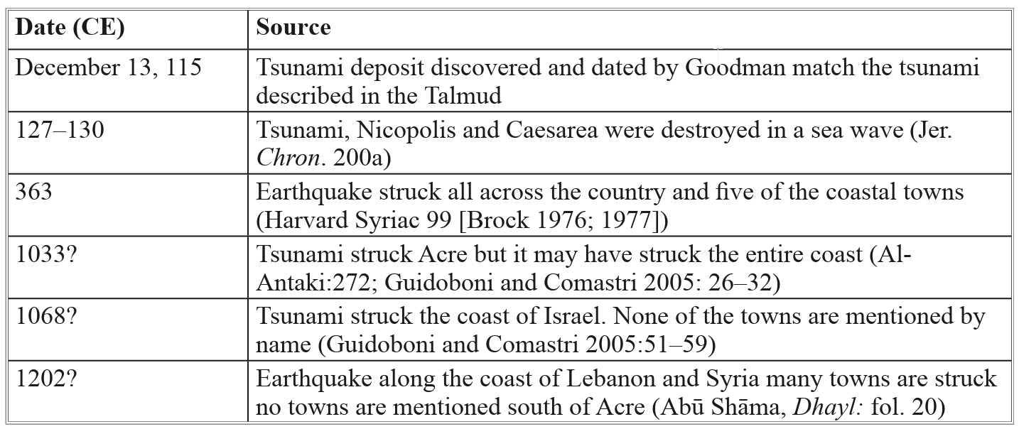 | Water wells | A study of tens of water wells at Caesarea suggests that the sea level was constant in the last 2 ky, and that there were no tectonic changes in the region during that period [30,61]. |