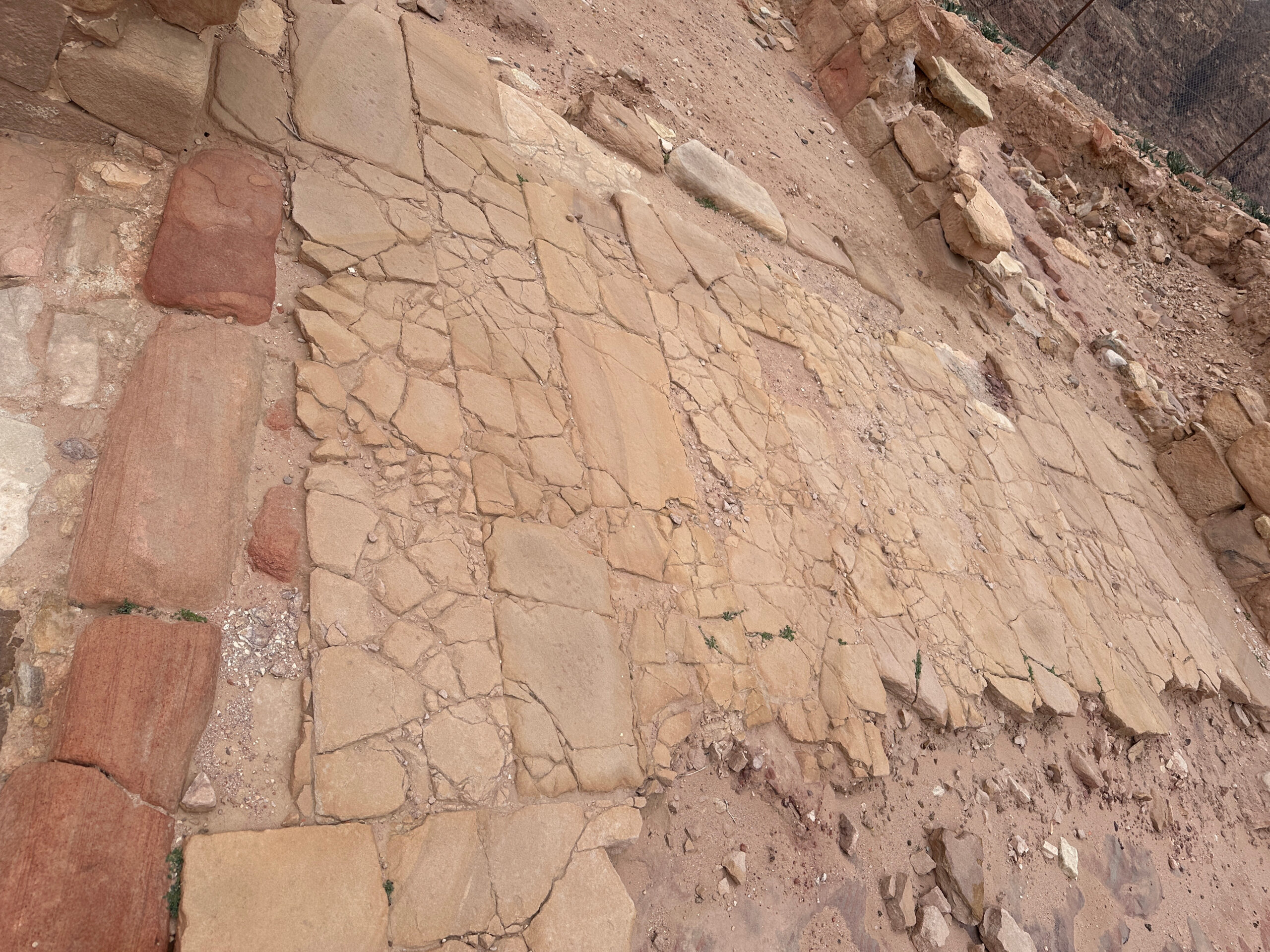 a witness to the violence with which the wood hit the floor. Also found in ez-Zantur IV were cracked steps (see Fig. 10 in Figures and Photos above) which may have been seismically damaged. There were no indications from the article what lay below the steps and whether geotechnical factors could have played a role in cracking the steps. Kolb et al (1998) report that some structures at EZ IV were built directly on bedrock.