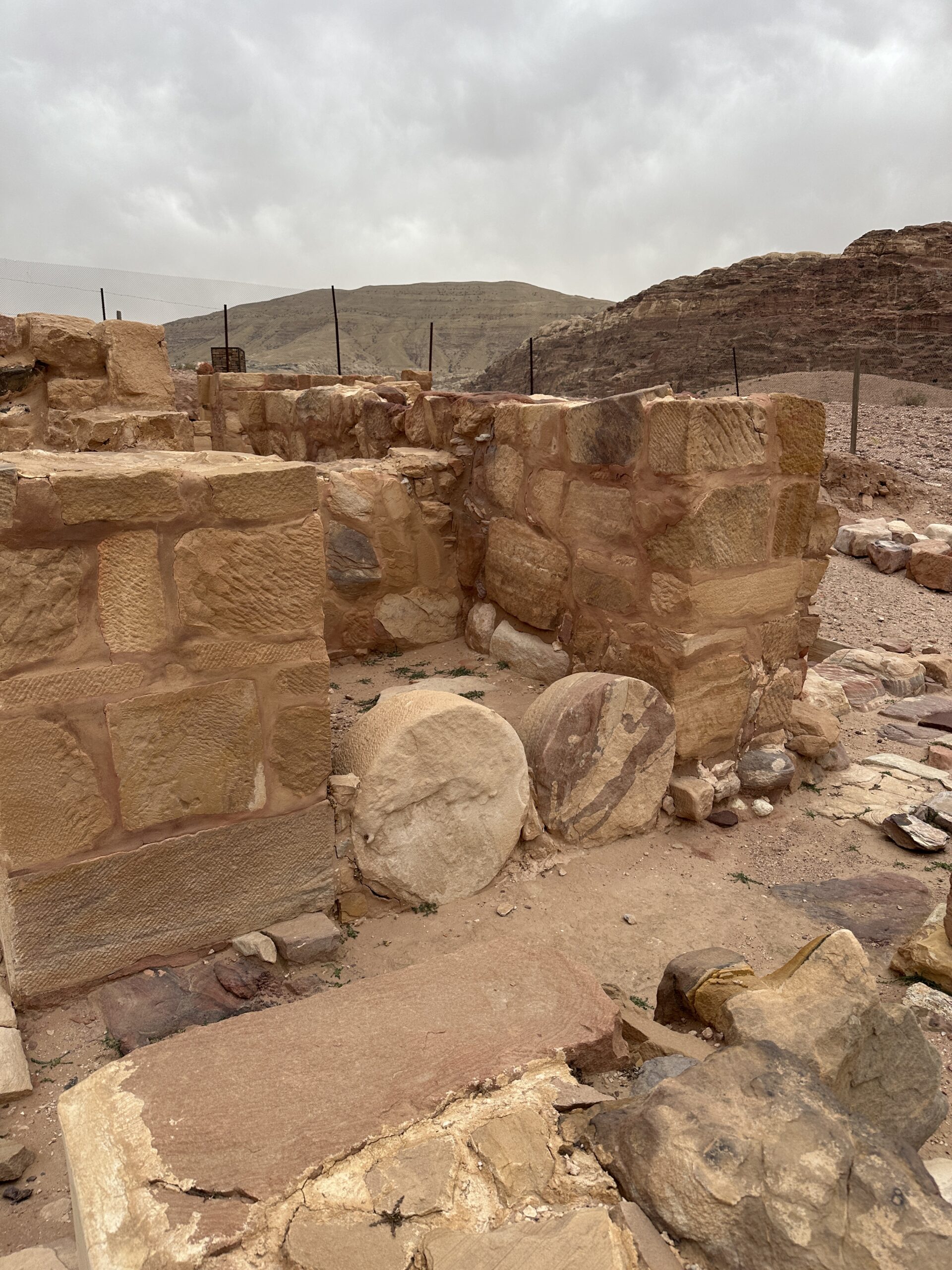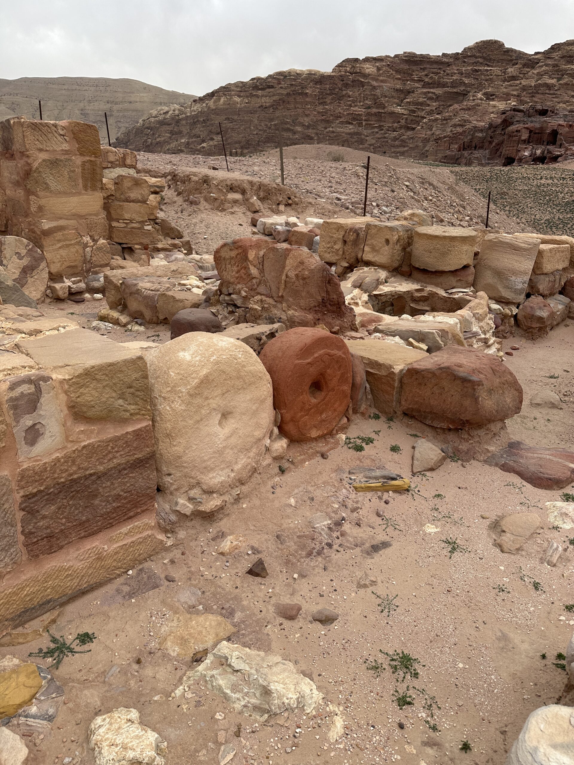 | Debris (from collapsed walls) | ? | The thick layer of mural and moulded stucco fragments on top of the household utensils of the fourth century proves beyond any doubt that the Nabataean decor remained on the walls up till the aforementioned natural catastrophe [363 CE]- Kolb et al (1998) |
