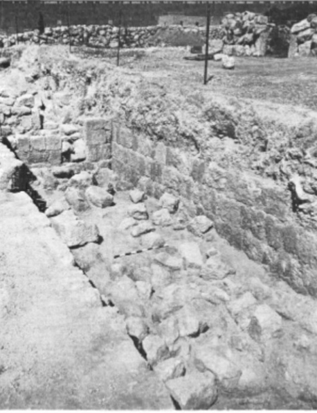 Ill. 42Hall B41, facing south, with wall W34 on the right, in an carly stage of the excavations (1972). Note the heavy debris of building stones. Netzer (2008) |