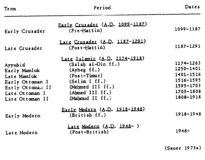 | I | Late Ottoman-modern | Late Islamic IIb-modern Pioneer, Mandate, and Hashemite |
