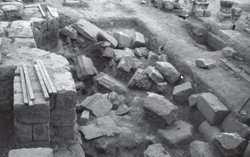 A similar level of destruction was revealed throughout the excavation area, apart from the interior of the early Islamic construction described above. As already evidenced by the excavation of 2016, the entire area outside this building was full of tumbled architectural blocks (Fig. 7) such as spirally fluted column shafts, decorated architraves, cornices, and other elements.