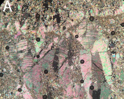 Stratigraphy of carbonate deposits from the Jerash aqueduct, shown as polished slabs (left) and fabric aspects (right). There are three depositional sequences (JJT1 to JJT3) separated by plaster. Boundaries between layers are marked by red lines. In layer L48 deformation twins are present in calcite crystals [JW:earthquake]. Calibrated radiocarbon dates from Boyer (2019). click on image to open in a new tab Passchier et al. (2021) |
