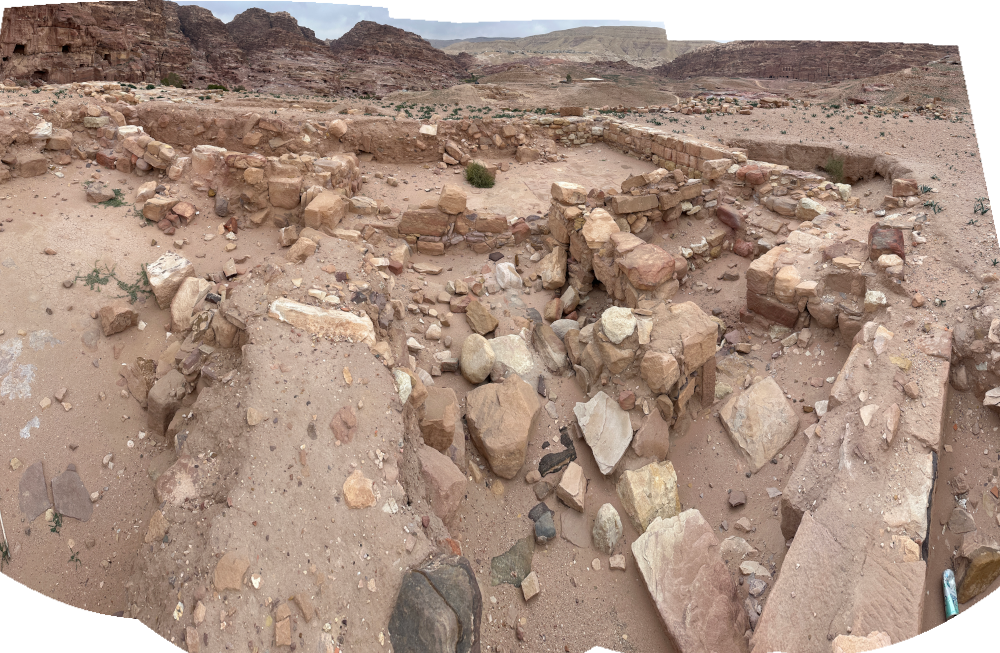 Only in two restricted areas, both outside the building, have the original floors been reached, and until more evidence is forthcoming the date of its construction must remain uncertain. But from the secondary surfaces within the building, some of them laid down after the partial destruction of the interior walls, a series of coins gives a firm date for the latest occupation of the structure. Of eight coins so far studied, two are of Malichus II and Shaqilath II (c. A.D. 40-71), five are of Rabbel II and Gamilath (A.D. 71-106, but late in the period, since Gamilath is Rabbel's second consort), and one is of Rabbel with either Shaqilath or Gamilath, this being uncertain. The significance of these coins is increased when it is noted that four of Rabbel II and Gamilath come from the same layer of make-up beneath one of the secondary floors. There can be little doubt, therefore, that the building was in use at the end of the 1st century A.D., and probably right up until the Roman conquest of A.D. 106, though the apparent lack of Roman Imperial coins suggests that it soon feel out of use then. Judging from the fact that the secondary surfaces from which the coins come in some cases seal the first destruction levels of the building, a date in the first half of the 1st century A.D. for its construction is not, perhaps, unlikely. An earlier date than this for the rebuilding of the main wall is precluded by the discovery of a coin of Aretas IV and Shaqilath I (c. 9 B.C-A.D. 40) in a level immediately underlying the construction level associated with that rebuilding.