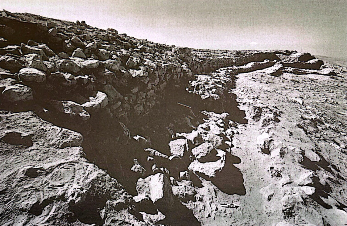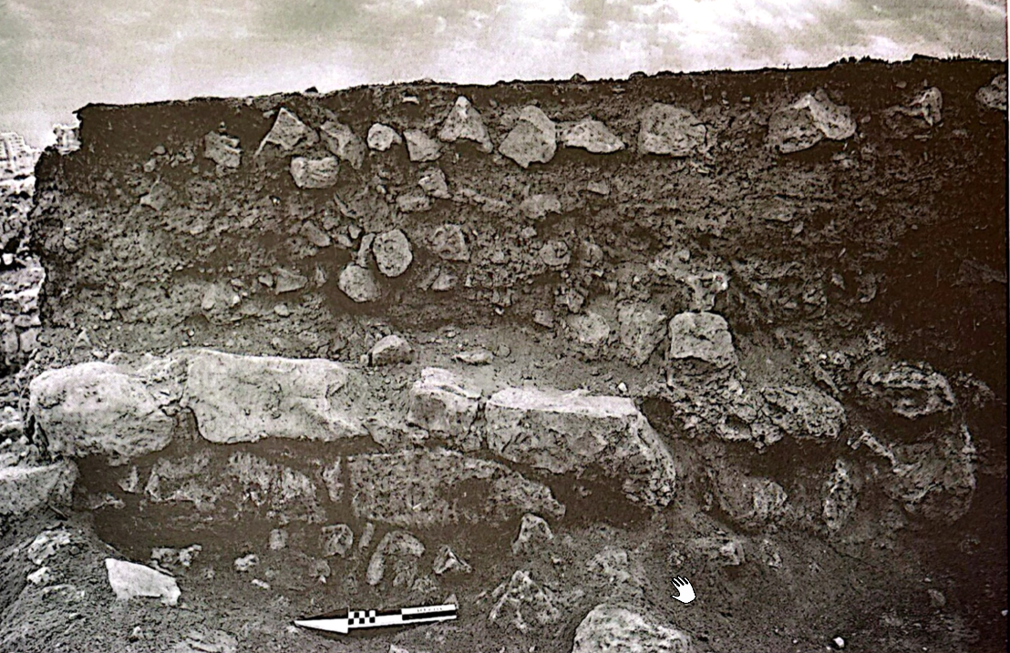 the presumed height of the later EB III city-wall, suggested by a flight of steps of a