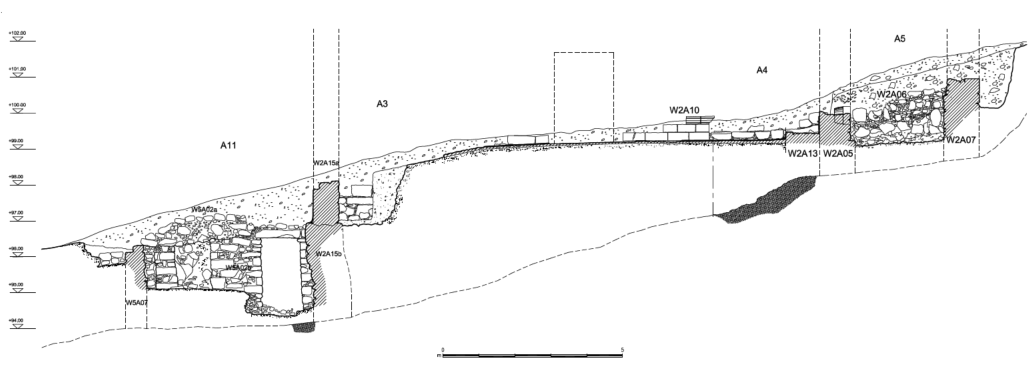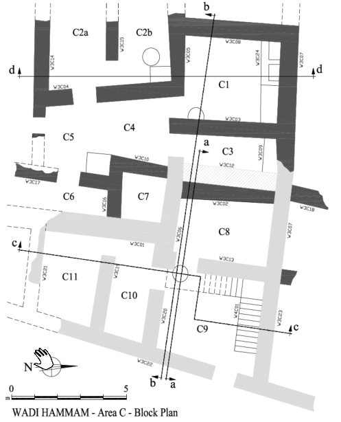 The plan and function of the structure on the upper terrace of Area C in Stratum 3 is unclear, although the wall bordering the area on the north (W3C07) and the subterranean chambers seem to date back to that period. These chambers, connected underground, were only partially excavated and their purpose could not be clarified (see further below).