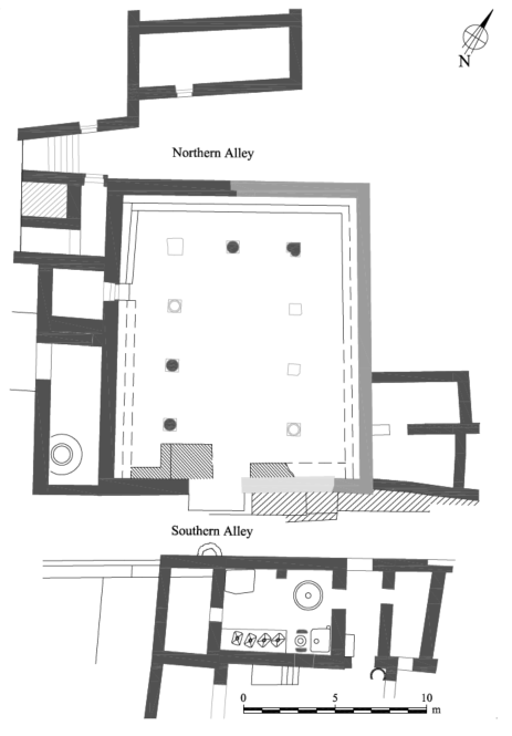 Block plan of Synagogue II and surrounding Stratum 2 structures and alleys
