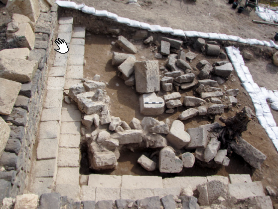 The debris in the northwestern quarter of the synagogue hall, which had accumulated to a maximal height of ca. 2.2 m above floor level, provided important information concerning the last stage of the building and its final collapse. The components of the corner column had fallen to the southwest, and courses of blocks from the walls, still bound together by mortar, were discovered lying on their sides among the debris. In the debris were hundreds of roof tiles and dozens of large construction nails that probably originated from the truss that supported the tiled roof. All this evidence seems to imply that the final collapse was caused by an earthquake. The latest pottery and small finds on the floor beneath the debris date to the fourth–early fifth centuries. These finds were probably washed in from above after the abandonment of the building, but before its collapse, and seem to have been sealed inside shortly thereafter, since no material of later date was recovered on the floor. Thus, the building probably collapsed in an earthquake in the early years of the fifth century (perhaps in 419?).21 The similarity between the material beneath the debris and that found inside the bema indicates that the renovations in Sub-Phase IIb took place shortly before the destruction of the building. As noted above, the two successive plaster floors in some places suggest two stages of renovation in this sub-phase.