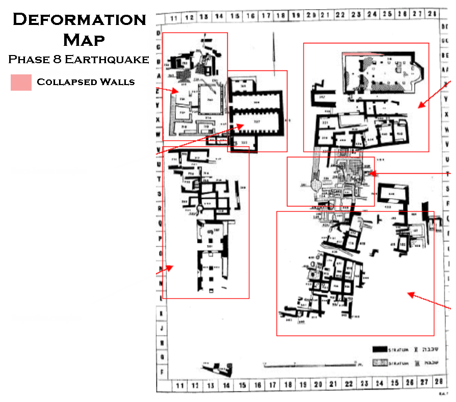 collapse and conflagration in diverse areas of the site- Lipschitz et al (2011) |