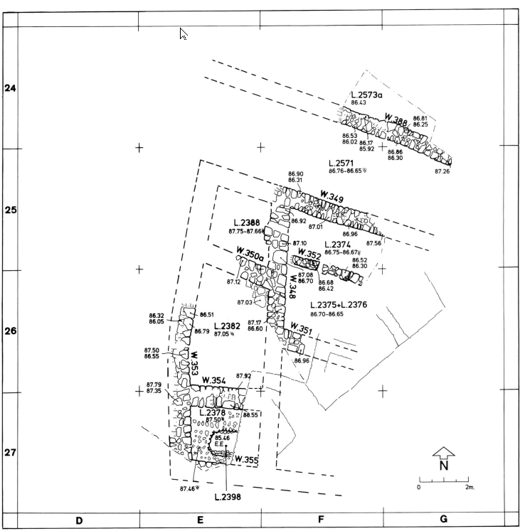 This stratum is represented by a packed earth floor, L.2325 (incorporating L.60; Fig. 1.11), tilted steeply to the west. No walls ascribed to this stratum were uncovered. Several objects were found on this floor, including a cooking jug and an iron knife (Fig. 1.1).
