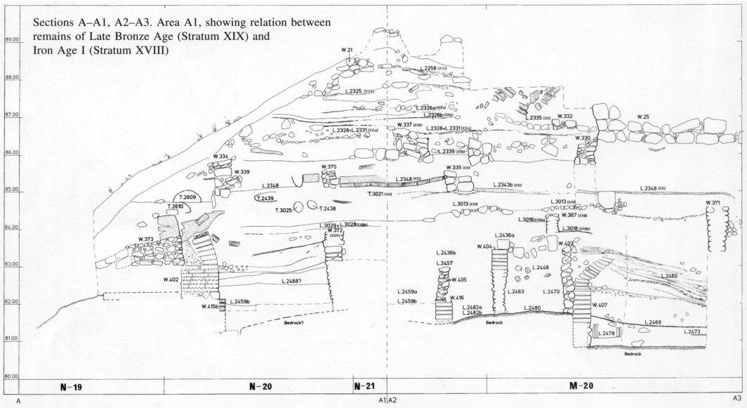 This area was excavated with the aim of exposing early Iron Age I and Bronze Age remains in a locality where excavation was not restricted by the Iron Age IIA or B city wall (Squares M–N/20–21; Plan 1.4; Sections A–A1, A2–A3).