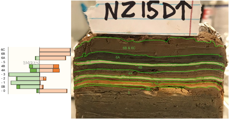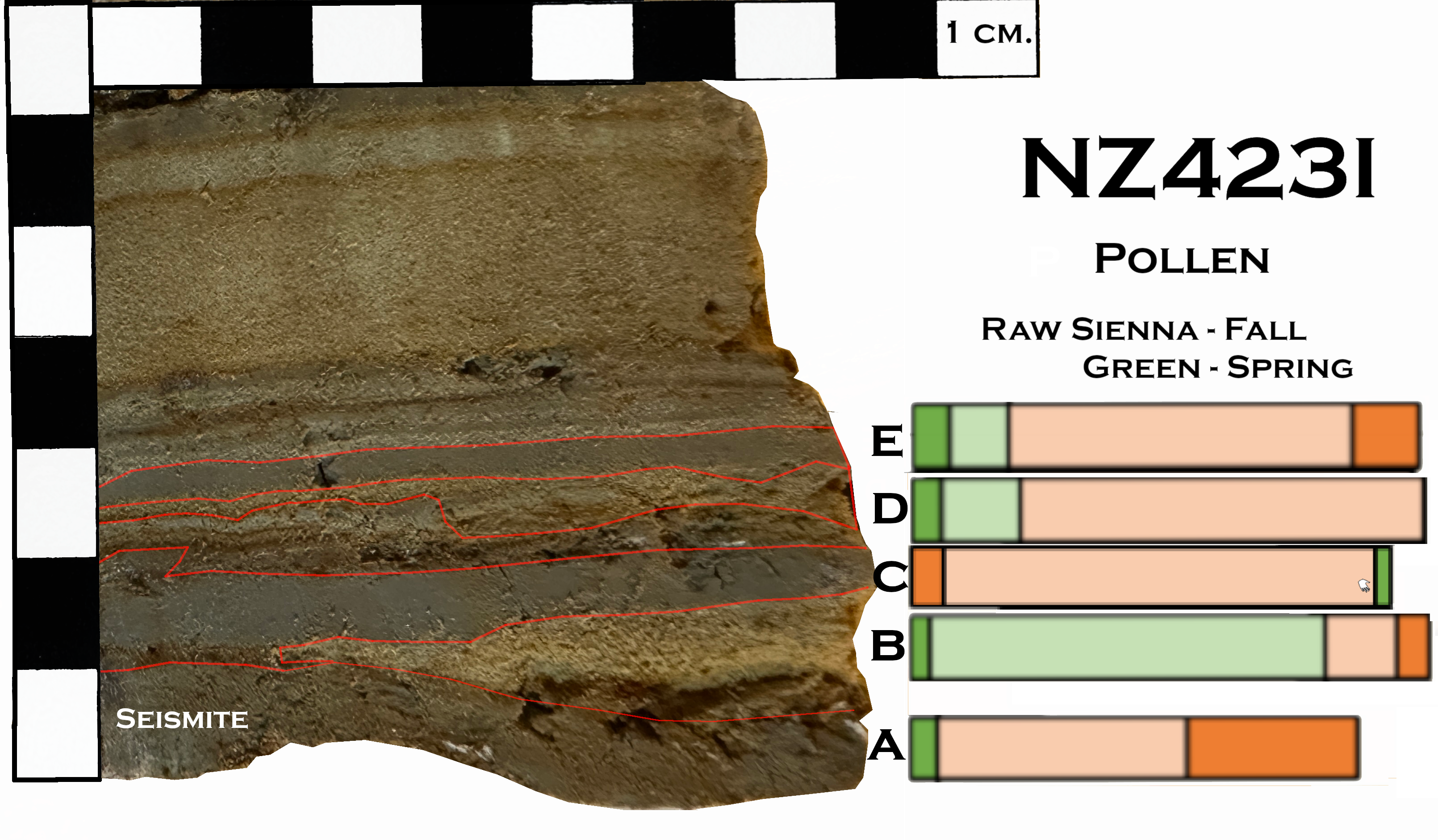 | RCNZ18107 | JW: Big Twig, some burning, Lab: Wood - in seismite | 165 | 1637 | 25 | ||