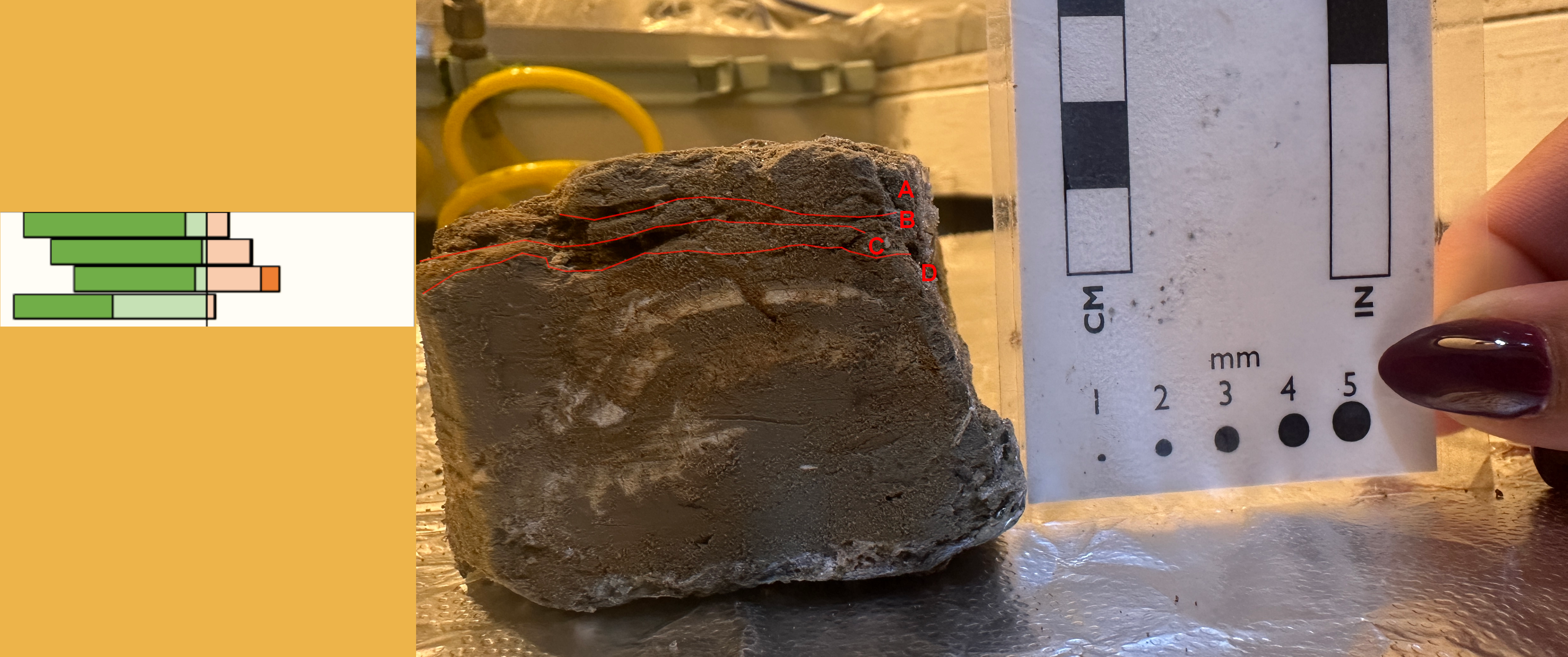 Closeup on Woody Deposits with rulers and scales Photo by Jefferson Williams 14 Feb. 2023 |