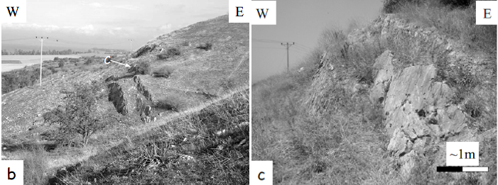 We opened three trenches across three of the mapped N–S-oriented normal faults (Fig. 2). These faults are part of the mapped fault zone and are separated by ca. 100 m.